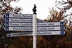 - ↑ a b Františkovy Lázně - Léčivé prameny, Destinační a informační agentura Fr.Lázně, z.ú., 2021. Přistupné on-line: www.frantiskovy-lazne.info.cz[nedostupný zdroj]