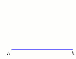- Buď narýsujeme kružnici o libovolném poloměru se středem v bodě P. Ta protne h v bodech A a B. Kolem každého z bodů A a B narýsujeme kružnici s poloměrem |AB|. Spojnice průsečíků dvou kružnic se středy v A a v B je kolmá na h a prochází bodem P. (Stačí také vytvořit jeden průsečík a propojit ho přímkou s P.) Je tomu tak proto, že hledaná kolmice je množina (geometrické místo) bodů, jež jsou stejně vzdáleny od A i od B. Vzhledem k tomu, že obě kružnice měly stejný poloměr, tak jejich průsečík musí být vzdálen od A i B stejně, konkrétně o délku |AB|. Proto oba průsečíky leží na kolmici k h. A jelikož jsme A a B na začátku konstrukce zvolili tak, aby i pata P měla od nich stejnou vzdálenost, musí také P ležet na této kolmici.