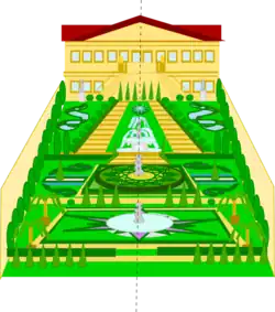 Náčrt symetrie a pravidelnosti historické zahrady.