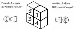 Objekt se může zobrazit až v šesti hlavních směrech. Za hlavní pohled (tzv. „pohled zepředu“) se volí takový obraz, který obsahuje o daném objektu nejvíce informací.