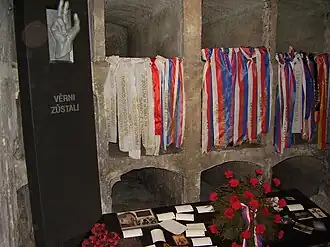 5. N, Resslova 9a 120 00 Praha 2 Česká republika 50° 4' 33 1932"; MAPY, 14° 25' 0 0336" EZobrazit na mapě: Google. Pomník Obětem 2. světové války, Resslova 9a, terasa kostela sv. Cyrila a Metoděje. Encyklopedie Prahy 2 [online]. 2019-07-20 [cit. 2025-03-02]. Dostupné online.