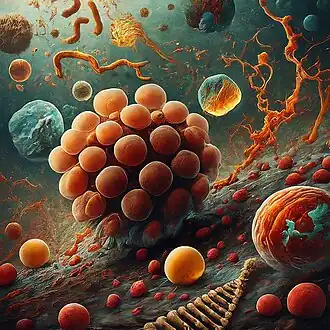 Oparin si dále všiml, že bílkoviny vytvářejí ve vodě koacerváty - kapičky, oddělené od okolí ostrým rozhraním, jakousi membránou. Mohou dokonce pohlcovat různé látky a zvětšovat tak svůj objem, až se nakonec vlastní vahou rozdělí na několik dceřiných kapiček. Tyto koacerváty byly podle Oparina zárodky prvních buněk, zvláště když pohltily mimo jiné i nukleotidy a nukleové kyseliny. Zdokonalováním a stabilizací membrány i genů se z těch úspěšnějších vyvinuly první živé organismy.