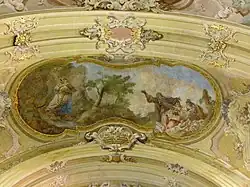 Nad presbytářem vidíme výjev Narození svatého Jana Křtitele, námětově vycházející z Lukášova evangelia. Alžbeta, Janova matka, drží v náručí svého syna, vedle stojí Janův otec Zachariáš držící v rukách tabulku s nápisem Nomen eius Ioan EST (Jeho jméno je Jan).