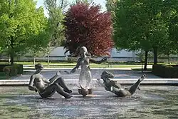 Prezidentská zahrada, v pozadí fontána Radost ze života -