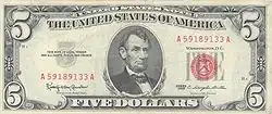 Bankovka Spojených států (United States Note) nominální hodnoty pět dolarů, 1963