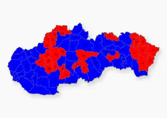 | Vítěz | Andrej Kiska (nezávislý) | 1 307 065 | 59,38 | 36 |