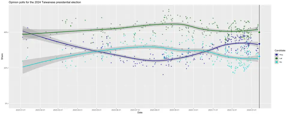 - ↑ NEWS, Taiwan. Final Taiwan News Poll of Polls, Jan 2. Taiwan News [online]. 2024-01-02 [cit. 2024-01-12]. Dostupné online. (anglicky)