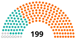 | Celkový počet křesel | 199 | 100 | — | |||