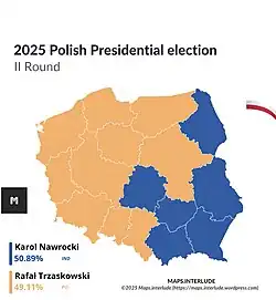 - ↑ ČT24, ČTK. Prezidentské volby v Polsku vyhrál Nawrocki. ct24.ceskatelevize.cz [online]. [cit. 2025-08-08]. Dostupné online.