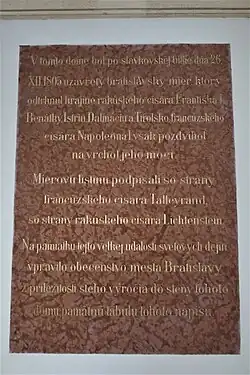 26. prosince 1805 v Zrcadlové síni paláce podepsali Jan I. z Lichtenštejna, Ignácz Gyulay a Charles-Maurice de Talleyrand Bratislavský mír mezi Francií a Rakouskem, kterým Rakousko kromě jiného pozbylo Tyroly a Dalmácii. V síni se konala také zahajovací zasedání Uherského sněmu, který sídlil v budově dnešní Univerzitní knihovny. V roce 1848 zde podepsal poslední korunovaný panovník Ferdinand V. tzv. Březnové zákony, jako např. zrušení poddanství.