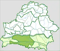 Pripjaťské Polesí se táhne od západu na východ v délce 140 až 220 km, od severu k jihu 105 až 140 km. Zaujímá rozlohu přes 20 tis. km². Nadmořský výška se pohybuje od 127 do 140 m. Nejvyšší bod měří 186 m (západně od obce Čaljuščavičy v Petrykaŭskému rajónu).