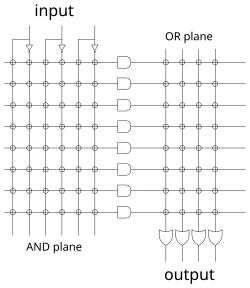 PLA je zkratka pro Programovatelné logické pole který představuje booleovskou funkci ve formě SOP (Sum of Products). PLA obsahuje NOT a AND a OR branky vyrobené na čipu. Prochází každým vstupem bránou NOT, díky které je každý vstup a jeho doplněk dostupný pro každou bránu AND. Výstup každé brány AND je přiřazen každé bráně OR. Konečně výstup OR brány produkuje čipový výstup. Takto se vytvoří vhodná spojení k použití výrazů SOP.
