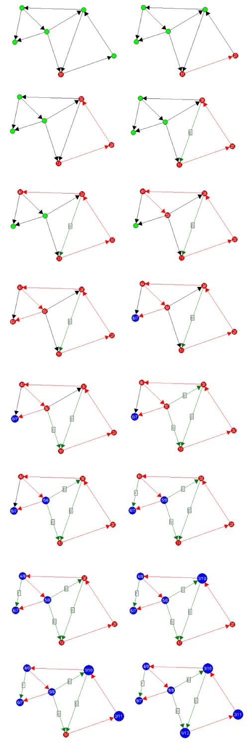 - Pole p předchůdců — v tomto poli jsou uloženi předchůdci jednotlivých uzlů ve stromě cest.