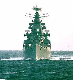| Výzbroj | 4× P-35 (2×2) 4× M-1 Volna (2×2, 44 střel) 4× AK-725 (2×2) 2× RBU-6000 (2×1) 2× RBU-1000 (2×1) 2× 533mm torpédomet (5hl.) |