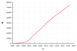 Růst počtu děl od roku 1994