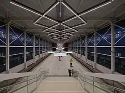 Stanice disponuje jedním vestibulem, který se nachází přímo nad nástupištěm a je spojen s nástupištěm prostřednictvím schodišť a výtahů. Východy z vestibulu směřují přes nadchody na obě strany silnice. Design stanice je inspirován starými železničními stanicemi, jako je například stanice Waterloo v Londýně, Pensylvánské nádraží v New Yorku či Kyjevské nádraží v Moskvě. Je zde zastoupena především bílá (nástupiště), červená a žlutá (pokladny a východy) barva.