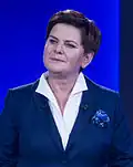 Ústavní krize v Polsku 2015: Polská vláda premiérky Beaty Szydłové (na obrázku) odmítla uznat rozhodnutí ústavního soudu týkající se volby nových ústavních soudců.[ 82] [ 83]