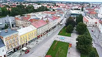 Pohled z věže radnice na náměsti TGM