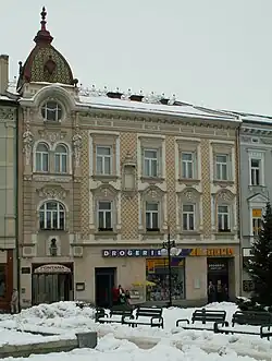 • Národní dům[41] ve stylu české secese od architekta Jana Kotěry z let 19051907. Stavitelem byl Otakar Pokorný. Jedná se zároveň o spolkový dům, městské divadlo[42], restauraci a kavárnu. Architekt sám navrhl nábytek, obložení, osvětlovací tělesa a vitráže. Výzdobu interiéru provedli mimo jiné také malíři František Kysela a Karel Petr a sochař Stanislav Sucharda. Za německé okupace byl interiér částečně poškozen.
