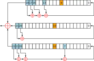 Protože LFSR jsou ze své podstaty lineární, jedna technika pro odstranění linearity je naplnit výstupy několika paralelními LFSR → do nelineární logické funkce formou kombinačního generátoru. Různé vlastnosti takové kombinační funkce jsou rozhodující k zajištění bezpečnosti výsledného systému, například aby se zabránilo srovnávacím útokům.