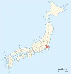 Mapa japonských provincií se zvýrazněnou provincií Šimósa