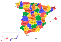 - ↑ Názvy provincií jsou uvedeny bez použití českých pojmenovaní (Kantábie, Asturie, Murcie, Baleárské ostrovy).