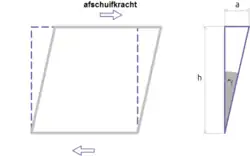 kde je modul pružnosti v tahu (též Youngův modul pružnosti).[1] Podobně pro skos můžeme definovat vztah, někdy nazývaný Hookeův zákon pro smyk,