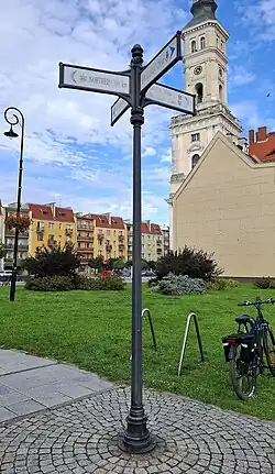 • Górne Przedmieście (Horní Předměstí) – západní historické předměstí města, jeho centrem je Plac Wolności (náměstí Svobody)