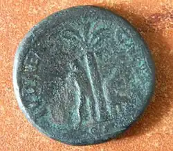 Revers mince s opisem IVDAEA CAPTA, neboli lat. "Judea pokořena"