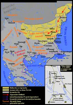 Proti Protobulharům útočícím na byzantské území[13] vytáhl byzantský císař Konstantin IV. Pogonatos. Nepokoje v Konstantinopoli však přinutily císaře tažení odvolat a při cestě zpět během bojů u řeky Tirča způsobili Protoblhaři byzantské armádě značné ztráty. Asparuch pokračoval ve válce s Byzantinci až do podzimu 681, kdy byl uzavřen mír. Byzanc tím formálně uznala existenci nového státního útvaru,[6][14] jež později značně ovlivnil další vývoj Slovanů na Balkánském poloostrově[7] a zasáhl i několikrát do vývoje samotné Byzance. Boje mezi Byzancí a novým bulharským státem však nadále pokračovaly a teprve během devadesátých let 7. století se Asparuchův stát s konečnou platností etabloval.[15]