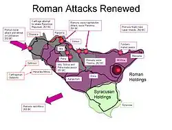 | Změny území | římská anexe Sicílie (kromě Syrakus) | ||