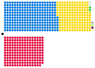 | Vládní strana | Hlasy ve volbách | % zisk | Mandáty v Dolní sněmovně | Křesla v kabinetu | Vůdce strany |