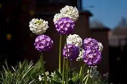 Květy jsou na delším stvolu ve tvaru koule. Tento znak si obvykle zachovávají mladé rostliny, starší exempláře v hustých trsech nemívají květenství tak hezké. Nejkrásnější jsou 2 - 3 roky staré semenáče. Skupina je totožná s botanickou sekcí Denticulata.
