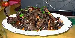 - Chó xào sả ớt – restovaný pes s citronovou trávou a čili