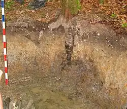 • En – vybělený horizont s bročky ze železa a manganu (nemusí být přítomen);