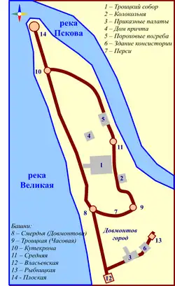 - ↑ Псковский Кром - Город Псков. Город Псков. 2011-02-22. Dostupné v archivu pořízeném dne 2017-01-22. (rusky) Archivováno 22. 1. 2017 na Wayback Machine.