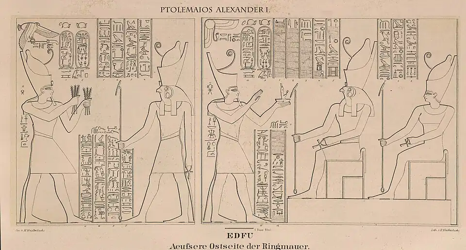 - ↑ GAUTHIER, Henri. Le livre des rois d'Égypte De la XXVe dynastie à la fin des Ptolémées (1914). Paris: D'Archeolgie Oriental, 1916. S. 81. (francouzsky) Chrám Kom Ombo.