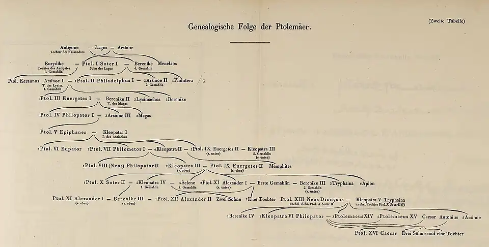 - ↑ číslování Ptolemaiovců v rodové posloupnosti je moderní konstrukce a může se lišit podle jednotlivých autorů a publikací