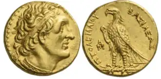 - ↑ statér s hmotností 14,25 g (kolem roku 299 př. n. l.)