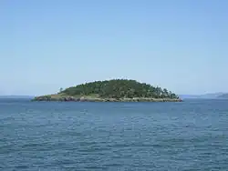 Klamný ostrov, kterým probíhá severní hranice zálivu.