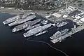Čtyři vyřazené americké letadlové lodě zakotvené v Bremertonu v roce 2012. Jedná se o plavidla USS Independence (CV-62), USS Kitty Hawk (CV-63), USS Constellation (CV-64) a USS Ranger (CV-61). V jejich blízkosti kotví několik dalších válečných lodí a ponorek.