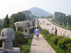 První čínský císař Čchin Š’-chuang-ti si nechal vybudovat pyramidální hrobku severovýchodně od centra města Si-an, tehdejšího hlavního města říše. Tvarem připomíná egyptské pyramidy, je postavena především z navezené a upěchované zeminy. Pod pyramidou by se měl nacházet pohřební sál, ale dosud nedošlo k jeho archeologickému průzkumu. Několik desítek podobných pyramid (často s komolým zakončením), jakožto hrobek císařské dynastie Západní Chan a vysokých státních funkcionářů, pak bylo vybudováno severozápadně od města, kde tvoří symbolickou ochrannou linii oproti mongolským nájezdníkům.