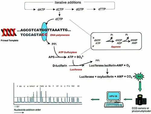 - ↑ a b AHMADIAN, Afshin, Ehn, Maria; Hober, Sophia. Pyrosequencing: History, biochemistry and future. Clinica Chimica Acta. NaN-NaN-NaN, roč. 363, čís. 1–2, s. 83–94. doi:10.1016/j.cccn.2005.04.038.