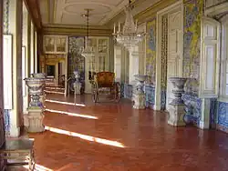 Navržený roku 1757 Robillionem, a je jedním z největších sálů v paláci. Zabírá celou jeho šířku a na obou jeho stranách jsou umístěna vysoká okna. Mezi nimi najdeme vyřezávané pozlacené stolky s porcelánovými vázami a nad nimi velká meziokenní zrcadla zdobená křišťálovými nástěnnými svícny. Malba na stropě, jejímž autorem je Francisco de Melo, zachycuje portugalskou královskou rodinu na jednom z koncertů pořádaných za panování královny Marie I. Mramorová podlaha v sále připomíná šachovnici.