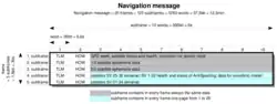 Navigační zpráva je modulovaná zvlášť na signál. Skládá se 25 rámců, jejichž odvysílání trvá 12,5 minuty. Každý rámec obsahuje 5 podrámců, které obsahují data: