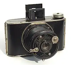 - ↑ Poznámka: V německém originále se uvádí Handcamera, což označuje "ruční" kompaktní fotoaparát, se kterým lze fotografovat bez stativu.