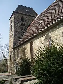 Historický střed obce tvořila tvrz, jejíž příkop se zachoval, a románský kamenný kostel s obrannou věží. Kostel a věž z první poloviny 11. století se do značné míry zachoval v původním stavu, má uvnitř kamenné pilíře s plastickými hlavicemi a několik kamenných náhrobků.[1] Na hřbitově mezi kostelem a farou jsou náhrobky F. Nietzscheho, jeho rodičů a sestry.