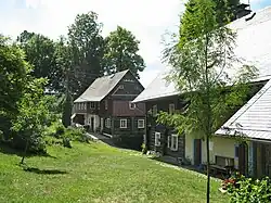 ![]() Památkově chráněné roubené podstávkové domy čp. 192 (vlevo) a čp. 141 | |