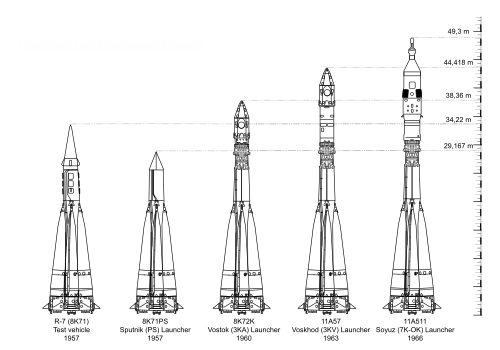 Na základě této rakety, respektive její vylepšené verze R-7A byly postupně vyvinuty další modifikace, které sloužily jako nosné rakety pro potřeby sovětské a později ruské a světové kosmonautiky: