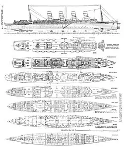 | Rychlost | 25 uzlů (46,3 km/h) Maximální celodenní průměr 26,7 uzlů (49,4 km/h) dosažen v březnu 1914 |
